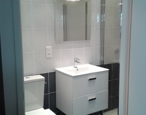 Retrait de la baignoire et de la faïence existante. Pose nouvelle faïence, passage en sol des tuyauteries, Pose du bac à douche extra plat Pose paroi de douche, combiné et accessoires